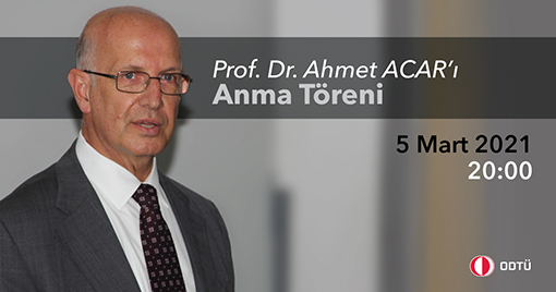 27 Aralık 2020 tarihinde kaybettiğimiz, eski Rektörümüz Prof. Dr. Ahmet Acar’ı anma töreni, İşletme Bölümümüz tarafından 5 Mart 2021 Cuma günü, saat 20.00'de çevrim içi yapılacaktır.