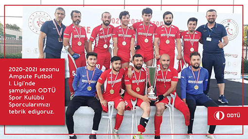 ODTÜ Spor Kulübü, ampute futbol 2020 - 2021 sezonunda on takımın yer aldığı 1. Ligi şampiyon bitirerek, Süper Lig'e yükseldi. Son maçında Şanlıurfa Engelliler ile karşılaşan ODTÜ Spor Kulübü berabere biten maç sonucunda penaltı atışları ile sağladığı üstünlükle 2020-2021 sezonu şampiyonu oldu. Şampiyon sporcularımızı tebrik ederiz.